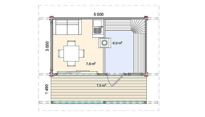 ИнфоПлощадь 15m² Терраса 8m² Всего. 23m²