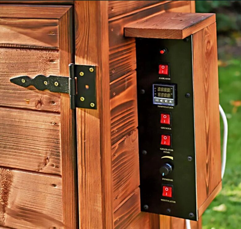 Полная автоматизация: нагреватель мощностью 2000 Вт с ПИД-регулятором обеспечивает стабильную температуру и экономию энергии. Осушитель ускоряет сушку, а мощный дымогенератор гарантирует превосходный вкус.