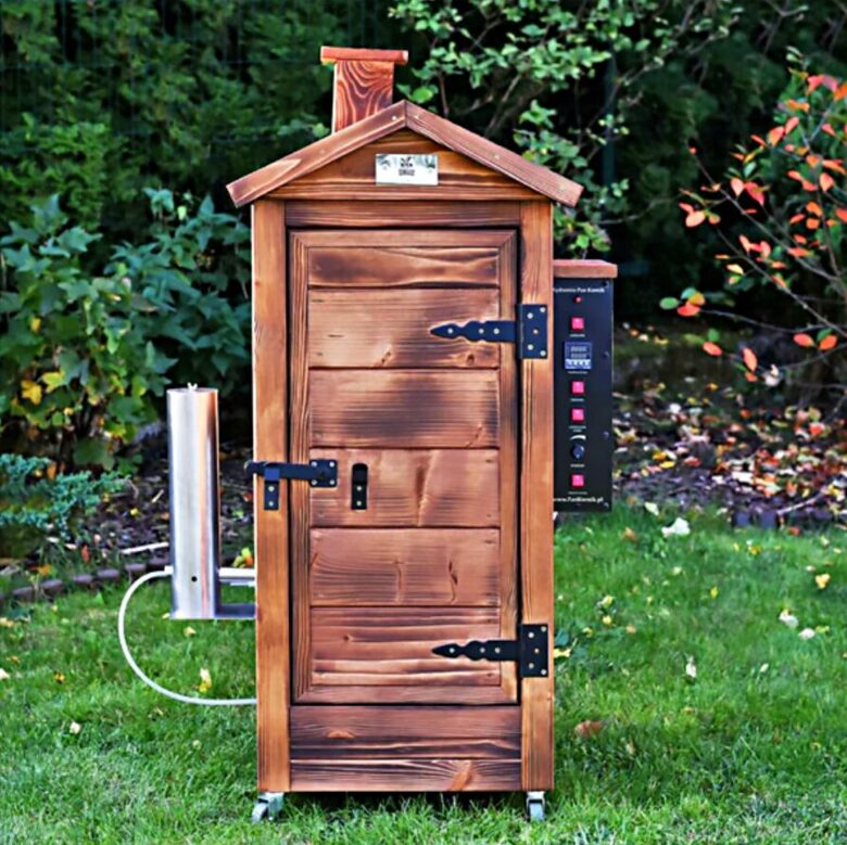 Каждая коптильня изготавливается вручную из натуральных деревянных досок, не покрытых краской, что сохраняет естественный вкус продуктов. Вмещает до 25 кг продукции.